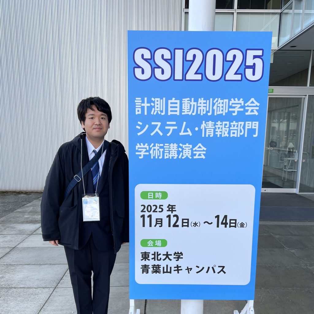2025年11月12日~11月14日に東北大学青葉山キャンパスで行われました2025計測自動制御学会 システム・情報部門 学術講演会(SSI2025)にて、当研究室より1件の発表を行いました。